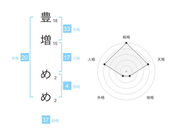 豊増 めめさんの総格は37画の5点!