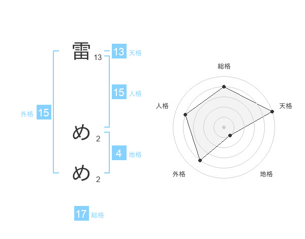 雷 めめさんの天格は13画の5点!