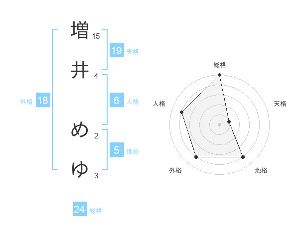 増井 めゆさんの天格は19画の1点!