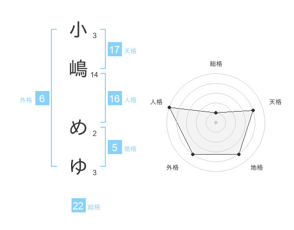 小嶋 めゆさんを姓名の画数から五運を鑑定