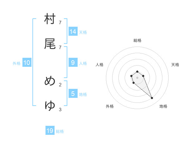村尾 めゆさんの地格は5画の4点!