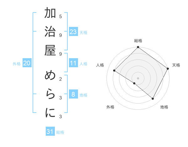加治屋 めらにさんの天格は23画の5点!
