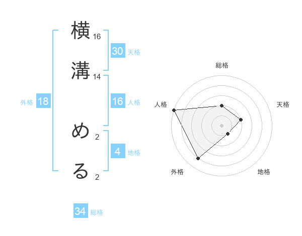 横溝 めるさんの外格は18画の4点!