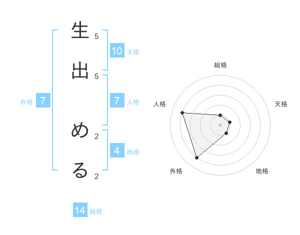 生出 めるさんの外格は7画の4点!