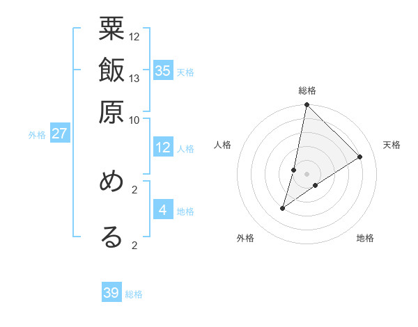 粟飯原 めるさんを姓名の画数から五運を鑑定