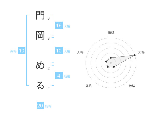 門岡 めるさんの総格は20画の1点!
