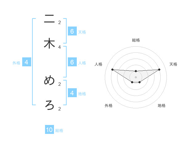二木 めろさんの天格は6画の4点!