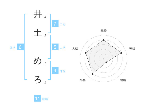 井土 めろさんの総格は11画の4点!