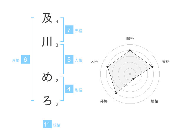 及川 めろさんの総格は11画の4点!