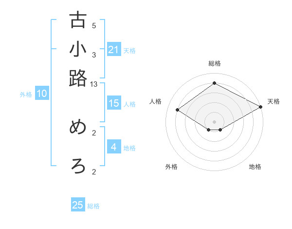 古小路 めろさんの天格は21画の5点!