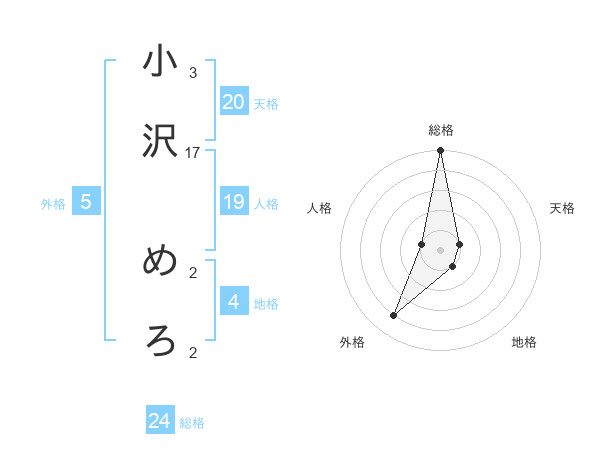 小沢 めろさんの総格は24画の5点!
