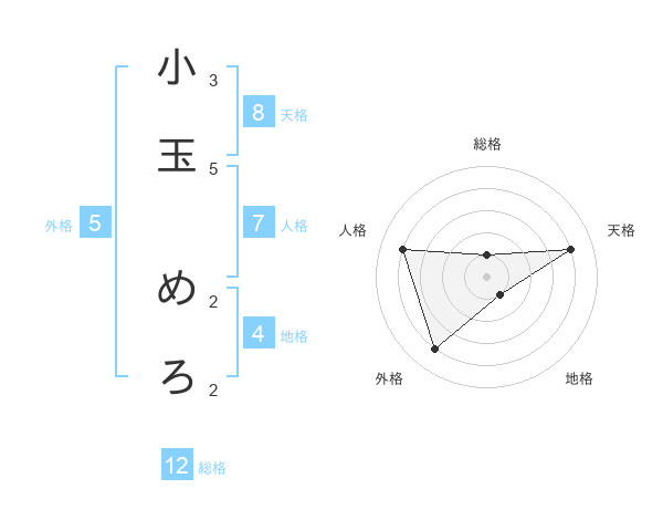 小玉 めろさんの総格は12画の1点!