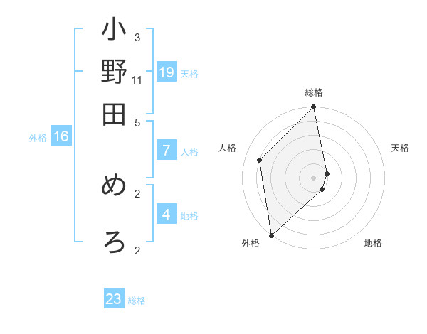 小野田 めろさんの総格は23画の5点!