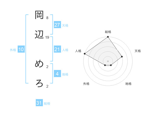 岡辺 めろさんの総格は31画の5点!