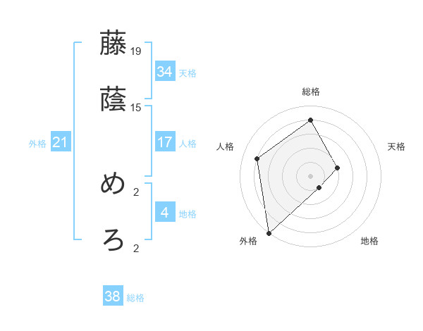 藤蔭 めろさんの総格は38画の4点!