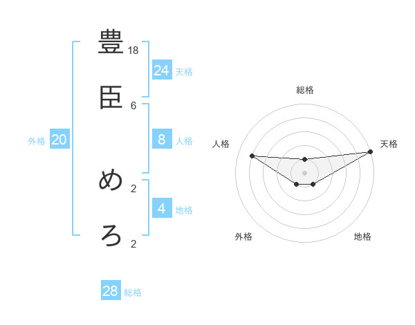 豊臣 めろさんを姓名の画数から五運を鑑定