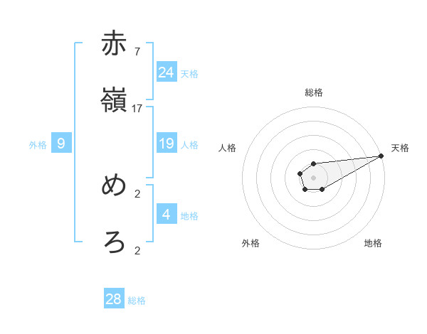 赤嶺 めろさんの天格は24画の5点!