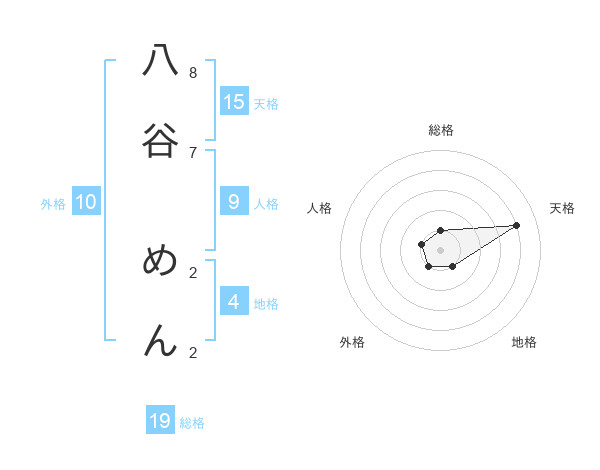 八谷 めんさんの天格は15画の4点!