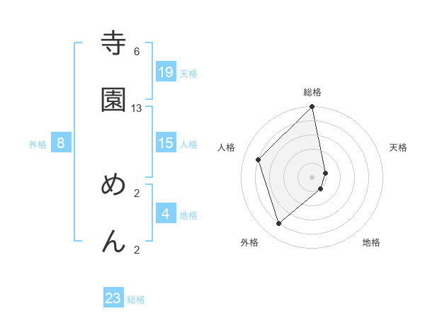 寺園 めんさんの天格は19画の1点!