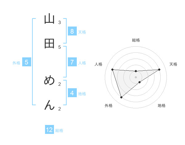 山田 めんさんの総格は12画の1点!