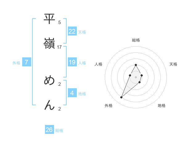 平嶺 めんさんを姓名の画数から五運を鑑定