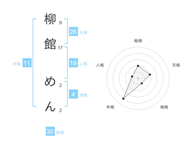柳館 めんさんの総格は30画の2点!
