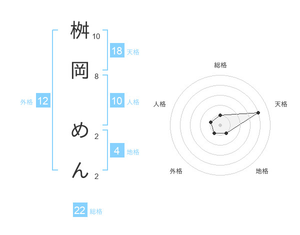 桝岡 めんさんを姓名の画数から五運を鑑定