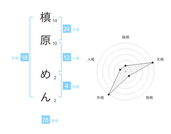 槙原 めんさんの外格は16画の5点!