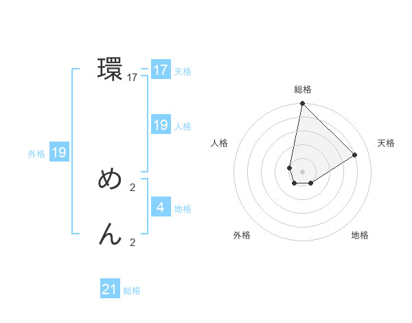 環 めんさんの総格は21画の5点!