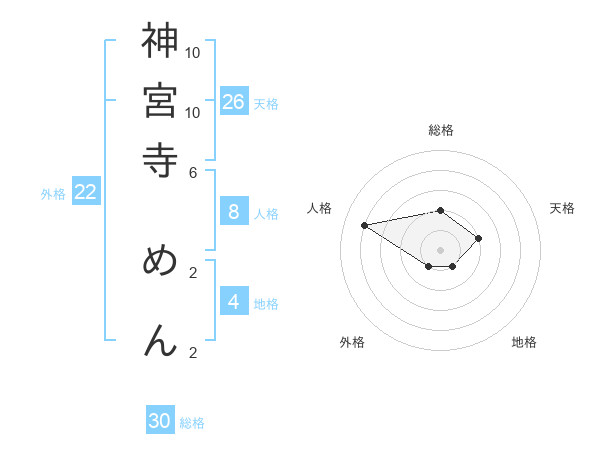 神宮寺 めんさんを姓名の画数から五運を鑑定