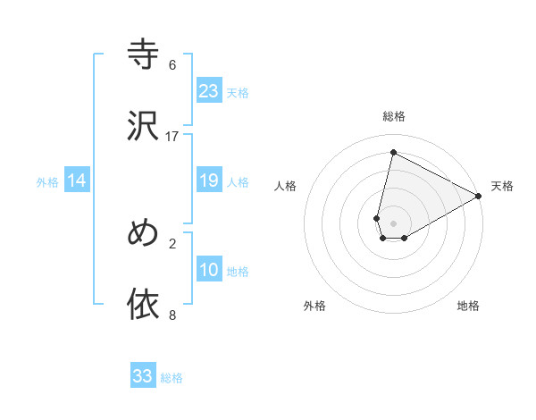 寺沢 め依さんの総格は33画の4点!