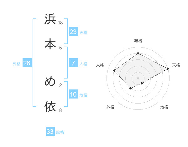 浜本 め依さんの総格は33画の4点!