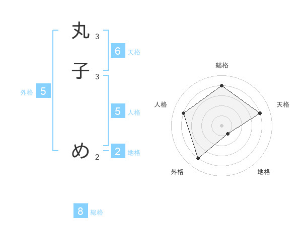 丸子 めさんを姓名の画数から五運を鑑定