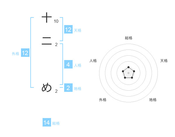 十二 めさんの総格は14画の1点!