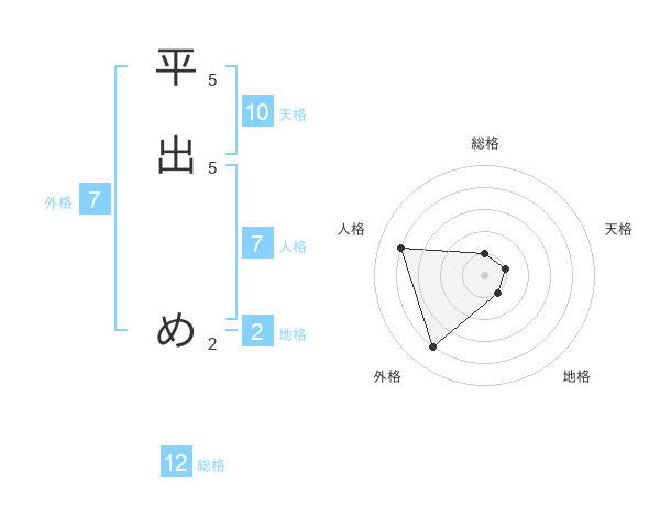 平出 めさんの総格は12画の1点!