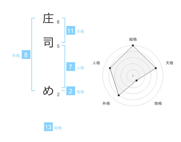 庄司 めさんの総格は13画の5点!