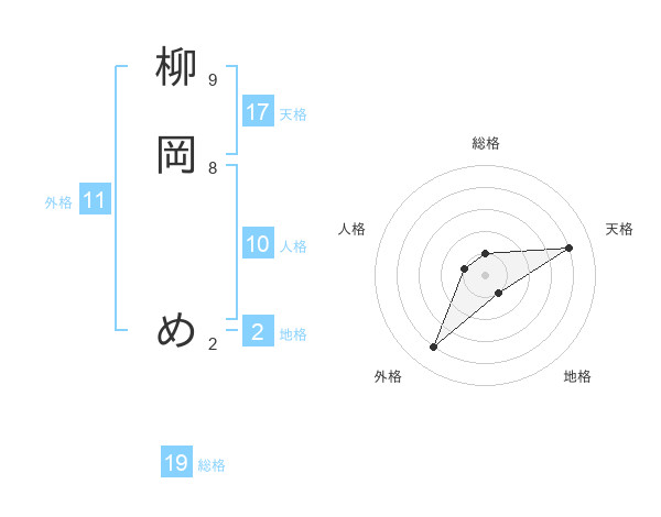 柳岡 めさんの天格は17画の4点!