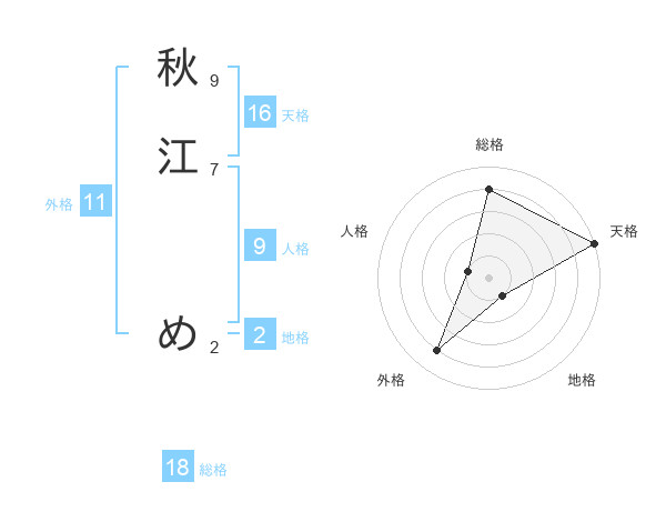 秋江 めさんの天格は16画の5点!
