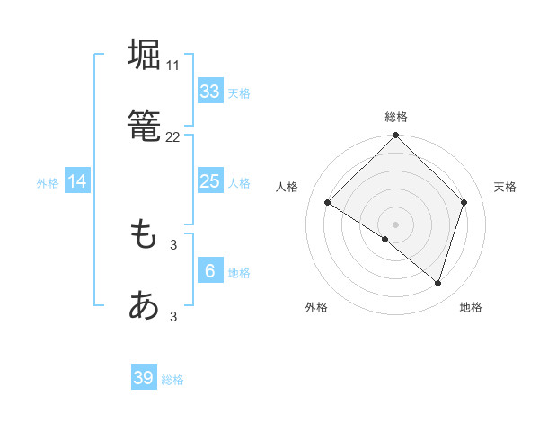 堀篭 もあさんの総格は39画の5点!
