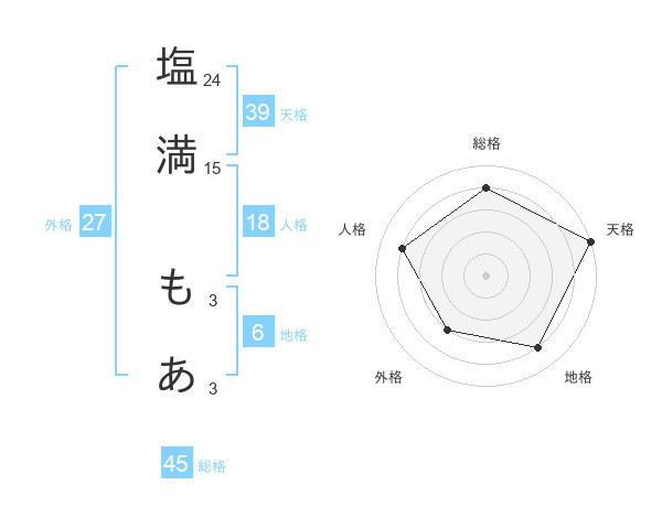 塩満 もあさんの天格は39画の5点!