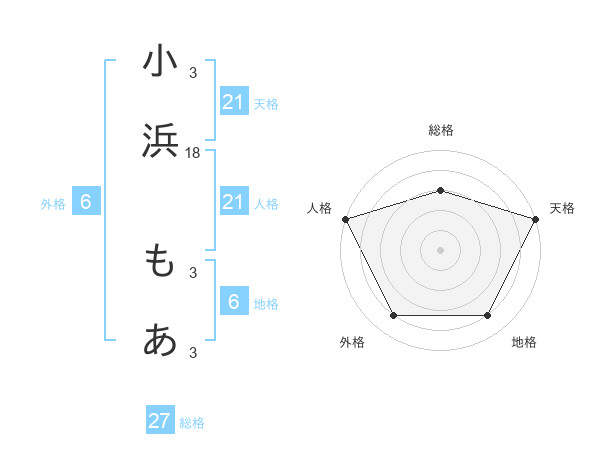 小浜 もあさんの天格は21画の5点!