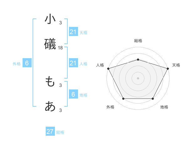 小礒 もあさんの天格は21画の5点!