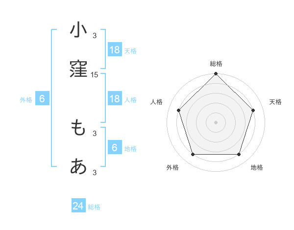 小窪 もあさんの天格は18画の4点!