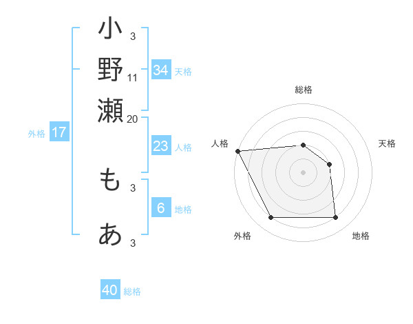 小野瀬 もあさんの外格は17画の4点!