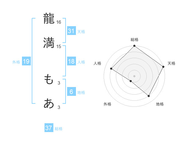龍満 もあさんの総格は37画の5点!