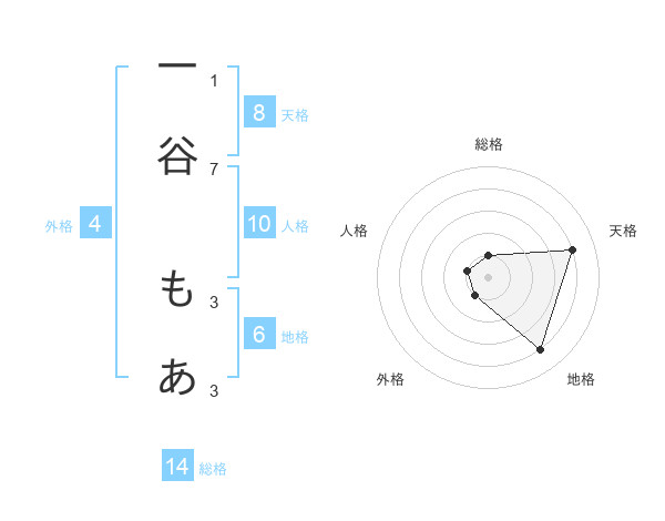 一谷 もあさんの天格は8画の4点!