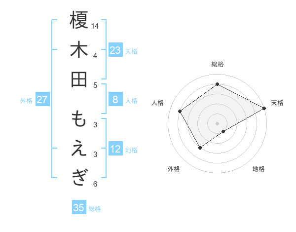 榎木田 もえぎさんの天格は23画の5点!