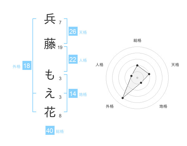 兵藤 もえ花さんを姓名の画数から五運を鑑定