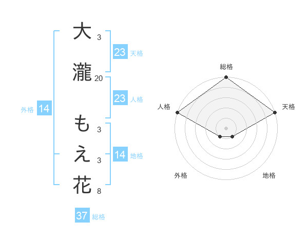 大瀧 もえ花さんの天格は23画の5点!
