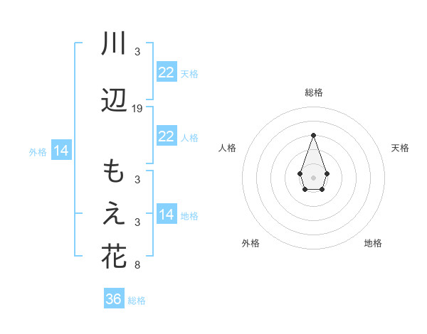 川辺 もえ花さんを姓名の画数から五運を鑑定